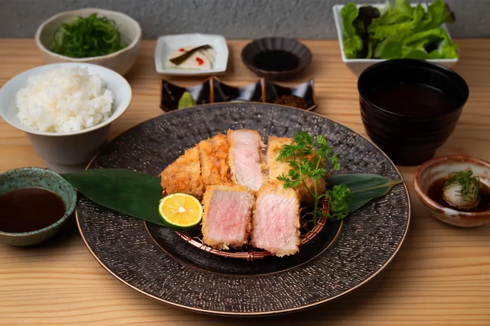 ここで提供する料理はとんかつです。さつま黒豚の最高峰「六白」をじっくりと熟成させて、お客様の目の前で一枚一枚店主が丹精込めて揚げていきます。